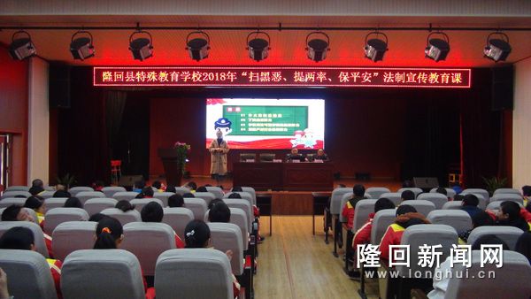 隆回新闻网讯 (通讯员 刘小玲 刘家宇) 11月30日上午,隆回特校邀请桃洪镇中心派出所民警对全校师生进行了“扫黑恶、提‘两率’、保‘平安’”主题法制宣传教育。